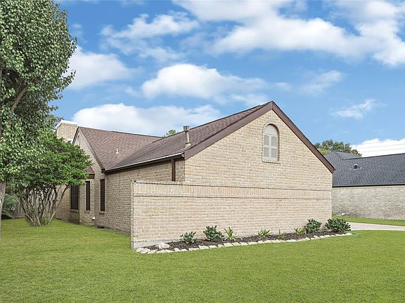 Unique and move-in ready, this 3-bed oasis features fresh paint, soaring ceilings, and brick on all sides (four-sides brick) for low-maintenance living. The huge, updated kitchen offers abundant prep space and storage for effortless cooking and entertaining. Outside, enjoy a well-maintained pool with spa, a covered patio, and an outdoor kitchen—perfect for year-round outdoor entertaining. Spacious bedrooms provide privacy and comfort, and smart, durable upgrades keep upkeep simple. Peace-of-mind perks: generator plug-in ready for backup power, plus refrigerator, washer & dryer included—just move in. Per seller, the home has never flooded.