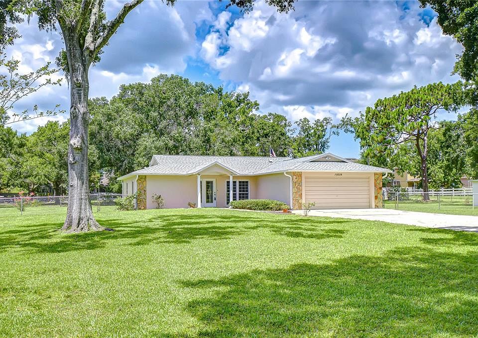 HARD TO FIND 1.14 ACRE LOT WITH A COZY 3 BEDROOM 2 BATH 2 CAR GARAGE HOME IN ODESSA. THIS HOME IS THE LAST HOME ON A DEAD END ROAD ON A GIANT LOT SO THERE IS NO THROUGH TRAFFIC NO CLOSE NEIGHBORS AND IS PEACEFULLY QUIET. THIS HOME HAS A BRAND NEW ROOF (2025), HVAC SYSTEM (2016) MAINTAINED CLEANED AND SERVICED ANNUALLY, A NEWER HOT WATER HEATER, BRAND NEW LED LIGHTING FIXTURES AND WAS PROFESSIONALLY PAINTED INSIDE AND OUT JUST BEFORE THE HOME WAS PUT ON THE MARKET. THE HOME IS A SPLIT BEDROOM PLAN AND HAS PLENTY OF STORAGE CLOSET SPACE THROUGHOUT THE ENTIRE HOUSE. THE KITCHEN FEATURES A CENTER ISLAND (WITH CABINETS ON BOTH SIDES) WITH THE OPTION FOR BAR STOOLS AS AN EATING AREA, GRANITE COUNTERS, DUAL SINKS WITH A TOUCHLESS SINK FIXTURE, A BRAND NEW STAINLESS STEEL APPLIANCE PACKAGE AND MORE COUNTER TOP AND CABINET SPACE YOU COULD EVER USE. THE HUGE MASTER BEDROOM HAS A LARGE WALK IN CLOSET AND HAS A VIEW OF THE PATIO AND BACKYARD. THE MASTER BATH HAS MATCHING GRANITE COUNTERS, SHOWER STALL AND PLENTY OF CABINET AND CLOSET SPACE. THE HUGE 22X16 LIVINGROOM HAS A BEAUTIFUL FIREPLACE AND FRENCH DOORS WITH BUILT IN BLINDS THAT LEAD OUT TO THE UNDER ROOF SCREENED IN PATIO PERFECT FOR RELAXING WITH YOUR MORNING COFFEE OR AFTERNOON ICED TEA. THIS PATIO IS LARGE ENOUGH TO ACCOMODATE A BIRTHDAY PARTY AND IS SET UP WITH A BUILT IN TV. THE LAUNDRY ROOM HAS THE WASHER DRYER HOOK UP WITH LOADS OF CABINET SPACE AS WELL. THERE IS A SEPERATE WORKSHOP BUILDING WITH A LOT OF STORAGE SPACE ON ONE SIDE AND SET UP FOR A WORKSHOP ON THE OTHERSIDE COMMPLETE WITH ELECTRICAL OUTLETS AND LIGHTING. THIS HOME IS IN TURN KEY MOVE IN READY CONDITION AND WITH THIS MUCH LAND THIS HOME IS PRICED TO SELL QUICKLY EVEN IN THIS REAL ESTATE MARKET SO GET OVER TO SEE THIS ONE QUICKLY AS IT WILL NOT LAST LONG!