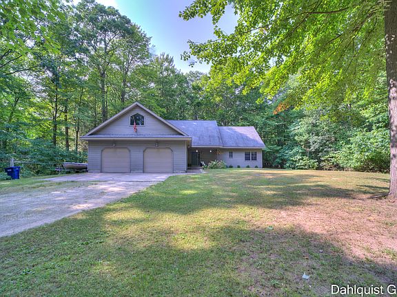 Welcome to your dream home nestled in a serene woodland setting within the sought-after Spring Lake School District. As you step through the front door, you'll be captivated by the stunning vaulted ceilings and the expansive living room that offers a perfect blend of elegance and comfort. The open eat-in kitchen is a chef's delight, featuring ample counter space and a charming dining area that opens up to the backyard through a convenient slider—ideal for seamless indoor-outdoor living. On the main floor, you'll also find a thoughtfully designed bedroom and a full bath, along with a practical main floor laundry room. The main floor primary suite is a true retreat, boasting a generous walk-in closet and an ensuite with a double vanity. Venture upstairs to discover two additional spacious bedrooms and another full bathroom. The upper level is connected by a whimsical walkway that adds a touch of fun and architectural interest. This home harmoniously combines modern convenience with natural tranquility, offering a perfect setting for relaxation and entertaining. This home has a brand new furnace that was installed November 2024. Don't miss the opportunity to make this woodland retreat your own!