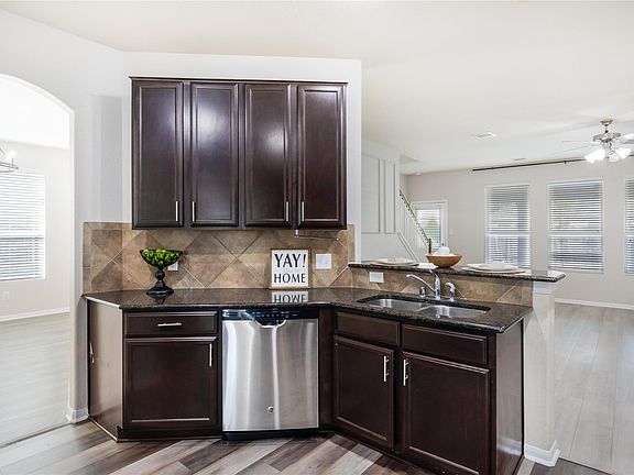 Low-maintenance backyardFormal dining roomBright breakfast nookEasy-care vinyl flooringUpstairs game roomSpacious covered patio