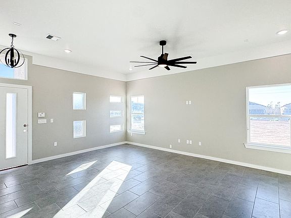 Beautiful New Construction in Tierra Del Este 90! This modern 3-bedroom, 2-bath, 1,665 sq ft home offers sleek design, high ceilings, and an open layout perfect for today's lifestyle. Enjoy a bright kitchen with granite countertops, shaker cabinets, a large island, pendant lighting, and a walk-in pantry. The spacious living area flows naturally to the backyard through large sliding doors. The primary suite features a luxurious walk-in shower, designer tile, and a granite vanity. Additional highlights include modern exterior architecture, tile flooring throughout the main areas, and recessed lighting.