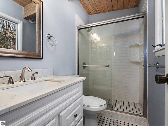 A Dreamy Waterfront Oasis Awaits You! Escape to your very own slice of paradise with this darling home located on the coveted Old Mission Peninsula. With 100 feet of private waterfront access, you'll have plenty of space to relax and soak up the sun while enjoying the breathtaking views of East Bay. This home is has the perfect location on Bluff Road, only a few homes on this segment until it is closed which gives this home a private cul-de-sac feeling with almost no traffic. This two bedroom, two bathroom home with floor to ceiling windows is perfect for anyone looking to embrace the beauty and tranquility of Northern Michigan living. The well thought out layout gives this home a large and open feeling with space for friends and family. Whether you're watching sailboats, a pack of cyclists cruising the quiet road, or simply enjoying a glass of one the regions best wines on your own deck, you'll feel like you're on vacation every day. Don't let this opportunity pass you by - make this waterfront gem your forever home today!