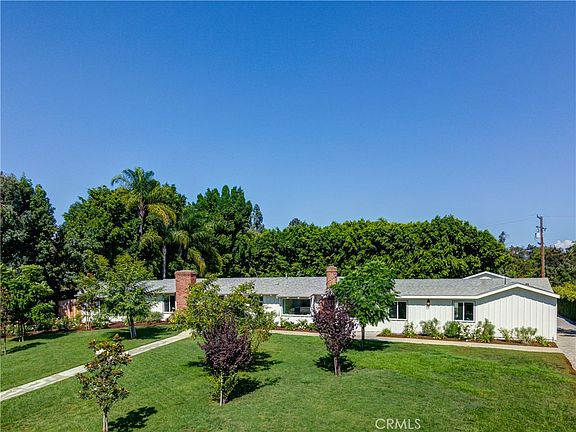 Welcome to this stunning single-level custom ranch-style estate in beautiful Friendly Hills. Situated on a sprawling 27,992 sq. ft. flat, private, and gated lot, this turnkey residence offers timeless charm blended with modern luxury. The home features 4 spacious bedrooms, 3 elegantly designed bathrooms, and approximately 2,710 sq. ft. of fully remodeled living space. A brand-new detached 750 sq. ft. 3-car garage sits behind a private gated entry and paver driveway—an ideal space for a car collection, toys, a future ADU, man cave, game room, or pool house. Step inside and you’re welcomed into the formal living and dining room, showcasing classic wainscoting, a stone fireplace, and built-in shelving, while oversized windows bathe the home in natural light, creating a bright, inviting atmosphere for entertaining or everyday living. The chef’s kitchen is a true showstopper with new stainless steel appliances, farmhouse sink, custom cabinetry, stone accents, and open shelving, and down the hall a large step-down family room with vaulted ceilings offers the perfect gathering space, seamlessly connecting to the dining area with a wall of glass framing the backyard and pool for effortless indoor-outdoor living. Each bathroom has been reimagined with a spa-like feel, including frameless glass showers with designer tile, dual vanities with quartz counters, and brushed gold fixtures, while a freestanding soaking tub beneath a sparkling chandelier creates the ultimate retreat. The primary suite is private and luxurious, while the 4th bedroom with attached bath makes an ideal guest suite or in-law quarters. The backyard is designed for entertaining and relaxation with a resurfaced pool surrounded by mature trees for privacy and a resort-like setting, complemented by a gravel lounge, café-style patio, and expansive lawns that provide space for gatherings, play, and pets. This estate is truly rare, every inch thoughtfully upgraded for both style and function, and just moments from Friendly Hills Country Club with easy access to both Orange County and Los Angeles, the property combines serenity with convenience. Enjoy scenic hills, hiking trails, and Whittier’s charming shops and dining nearby, truly a gem in the heart of Friendly Hills.