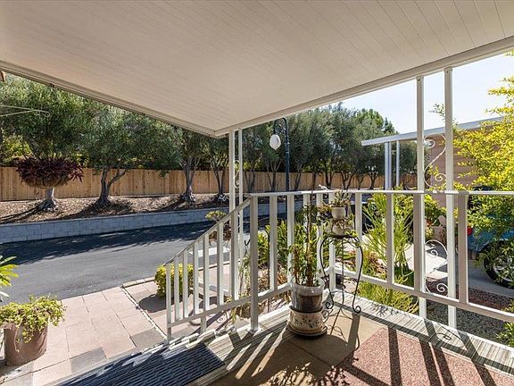 Located on a tree lined cul-de-sac street with no neighbors across from you! Welcome to Corona Del Vista, a well-maintained, resident-owned co-op share 55+ community where you own the land — No space rent or monthly land lease, and No Buyer in Fee! This home has fresh exterior paint and is located on a large lot that provides a spacious backyard that has plenty of room to garden or enjoy the peaceful outdoors. Other upgrades include a newer furnace that was replaced in 2021 and 4 brand new ceiling fans. The interior offers a spacious floor plan with separate Living and Family rooms, a formal Dining room, an eat-in Kitchen, laundry room, and two bedrooms, each with its own ensuite Bathroom. The Primary Bedroom boasts 2 closets and 2 sinks. The Kitchen boasts a large pantry, a dining bar, and a solar tube that provides plenty of natural light. The enclosed porch is not included in the square footage listed but provides additional living space for an office, hobbies, or storage. Conveniently located just a short walk from Guest Parking and around the corner from the fabulous amenities that this HOA has to offer! Corona Del Vista allows one pet under 40 lbs per household. The second resident can be age 45+. Low HOA fee of only $222/mo includes Trash & Dish Network Cable TV. Amenities include a clubhouse, pool, spa, library, shuffle board, BBQs, fenced dog park, RV parking (for an additional fee and per availability), and so much more! Located near shopping, restaurants, public transportation and just a short drive to the beach!