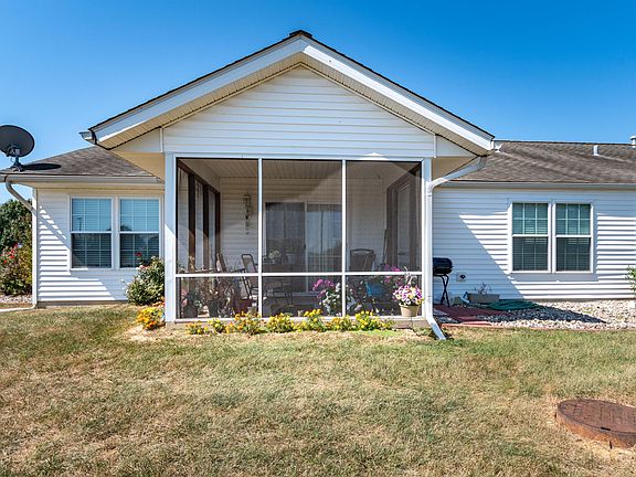 6 MONTHS FREE HOA fees included! Parkway Villas - enjoy this beautiful, more modern styled villa in Marion's 55 and over community. Well-maintained home. Vaulted ceiling in living room and master bedroom. Step in shower in master bathroom. Wider doorways. Wheelchair accessible community and villa. This beautiful villa has wood floors in the living room and dining area; eat-in kitchen. Light and bright. Newer floors, newer windows and garage door. Built in 2005. Enclosed sunroom/patio is ideal for enjoying outdoors. Small neighborhood with no thru streets. Maintenance fee includes weekly trash service, snow removal, lawn maintenance and mowing, house wash, and some trimming of landscaping. Corner lot. Lots to love about this villa. Some furniture is negotiable.