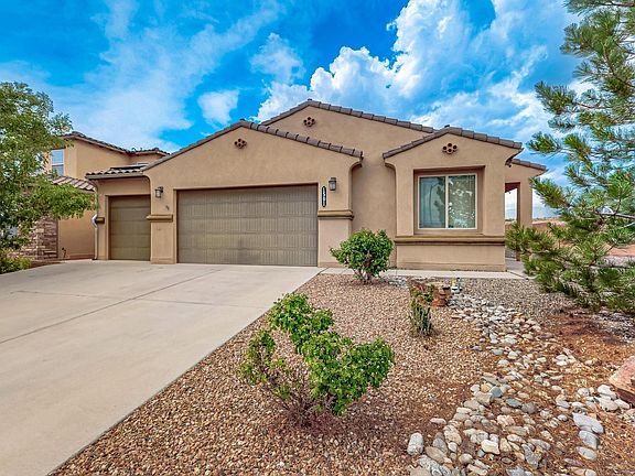 Beautiful home in established neighborhood!You won't want to miss the opportunity to own a home with so many extras including solar panels, a premium corner lot, 3 car garage, mountain views & more! This open floor plan home boasts 3 bedrooms, 3 bathrooms, laundry room & bonus/office space. The kitchen is a chef's dream with granite counters, tile back splash, tons of cabinets and eat- in dining area. Retreat into the generous sized primary bedroom with full bath that offers double vanity sink, stand alone shower and beautiful granite & tile accents.This home also offers certification for Build Green NM & Silver level for a nice eco-friendly touch!You will find this home has been built with both style and sustainability in mind. Close to schools, restaurants,shopping & minutes to KAFB!