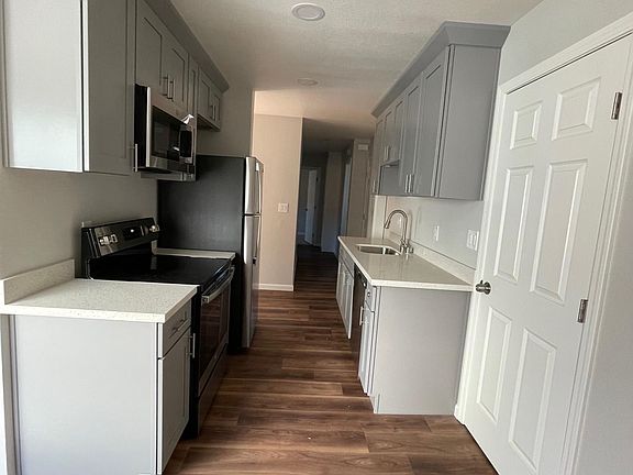 New interior paintRecently renovated upper unitStainless-steel refrigeratorElectric cooking rangeVent hoodHeating systemCeiling fans