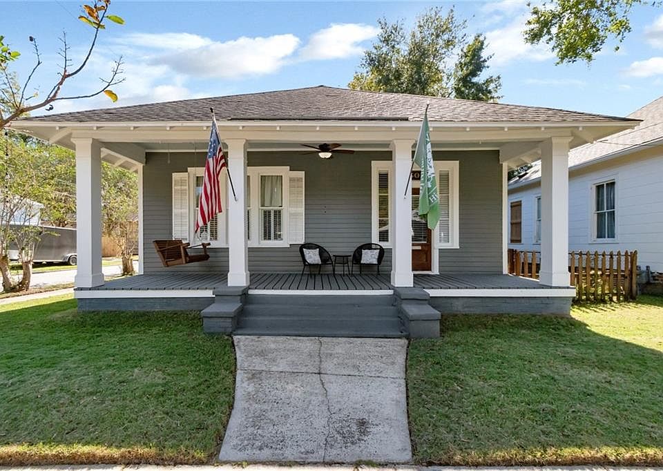 Move-in ready and perfectly charming! This two-bedroom, one-and-a-half-bath Midtown home is located in a very walkable neighborhood. Enjoy relaxing on the spacious front porch before stepping inside to high ceilings, hardwood floors, and a bright living room with plantation shutters & a gas log fireplace (needs a little maintenance). Next is the Formal Dining room with a decorative fireplace & plantation shutters. The updated kitchen features stunning cabinets, modern lighting, and new (2023) gas stove and dishwasher, plus plenty of counter space and room for a breakfast table. The large laundry room offers extra space for an office or playroom The primary bedroom includes a convenient full bath & walk in closet. Both bedrooms have walk in cosets & Plantation Shutters. Outside, enjoy a fully fenced backyard (has a wide gate) plus a patio perfect for barbecues and a well-maintained storage shed. Updates include a new AC unit (2018) and fresh exterior paint (2023), Dishwasher & gas stove (2023). A wonderful blend of comfort, style, and charm. Year built is unknown. ***Listing Broker makes no representation to accuracy of square footage. Buyer to verify. Any/All updates per seller(s).***