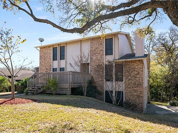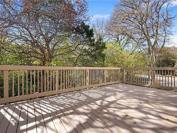 Unique corner lot house in rare secluded North Austin neighborhood. Backs up to wet weather creek. No HOA!! Walk out to large deck overlooking heavily wooded trees--perfect for entertaining. Spacious kitchen with built in cook top, stainless steel double oven and microwave. Oversized side entry garage with lots of parking. Tons of upgrades. Beautiful Brazilian Teak hardwood floors throughout. Large picture windows in Living and primary bedroom. Crown molding, surround sound. Gorgeous owner's suite with large walk in closet. No through traffic, no neighbors behind. 10 miles to downtown,, and 5 miles from Domain, Dell and Tech Ridge. Large mounted 70" Sharp TV conveys with house.