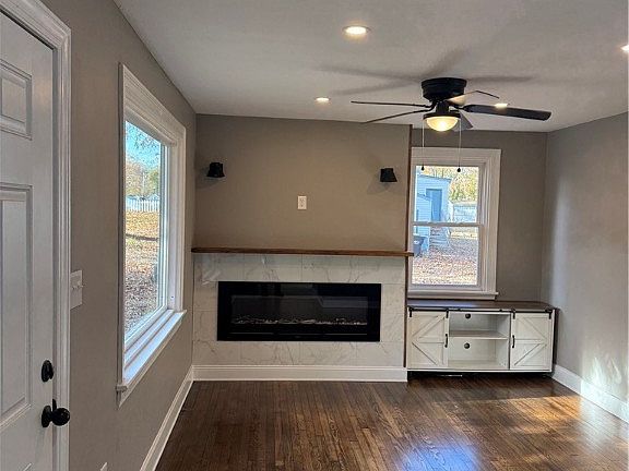 This home has had everything replaced and is beautiful . The kitchen has new cabinets, flooring ,appliances. The whole house has refinished floors and the living room a built in electric fireplace for a cozy feel.Both bathrooms have been totally remodeled with tile ,suspended vanities, new shower/shower pan & fixtures .The house also has new Batten siding, windows & roof. The front portico/ deck is new and adds to the character of this stater home/investment property or just the right downsize.