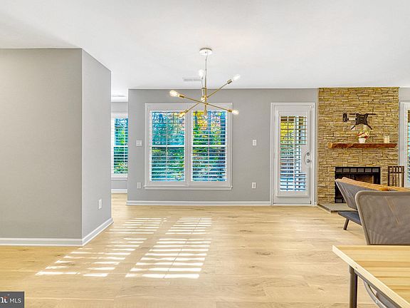 Welcome to your private oasis in the highly desirable Hampton Pointe! This charming 2-bedroom, 1.5-bath condo offers the ideal blend of privacy, elegance, and convenience. Just minutes from the Silver Line, Dulles Access Road, and all of Reston’s top amenities, this condo is a true gem. Step into a beautifully upgraded, open-concept space with new flooring and fresh light-gray tones throughout, and a spacious balcony overlooking lush greenery. The well-appointed kitchen boasts sleek gray cabinetry, quartz countertops, and a stylish backsplash that flows into the airy living area, complete with a wood-burning fireplace, refinished cabinets, and a live-edge mantel. The primary bedroom includes a generous walk-in closet, while large windows fill the space with natural light. You'll also appreciate easy access options—either from the front entrance or directly from the deck into the kitchen. Enjoy the comfort of low condo fees, newer appliances, plantation shutters, upgraded fixtures, and ample storage, including a balcony closet. Nestled in a vibrant community surrounded by acclaimed restaurants and excellent schools, this condo truly has it all. Don’t miss your chance to own this stylish, serene retreat—it's a must-see!