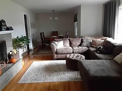 Three bedroom ranch, 1.5 bath (full fath has linen closet), with separate office and 3 season room. On corner lot with large sideyard and ground garden and garden box. Hardwood throughout the large living room and dining room and 3 bedrooms. Large kitchen, pantry, electric stove, wood fireplace, central air, driveway for 2 cars side by side, 1 car attached garage. Basement laundry room with washer, dryer and laudry sink. There is a regulation pool table in the remainder of the unfinished basement.