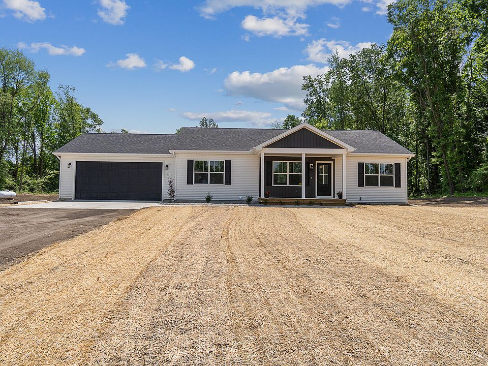 Nestled on just over 5 acres of land, this newly built home boasts privacy and seclusion. Surrounded by serene wildlife, mature tress and plenty of space cleared for activities or a future pole barn. The open concept allows an easy flow, with an ample amount of natural light through out the home. Providing 3 bedrooms, 2 baths and main floor laundry this home is perfect for anyone. The superior walls basement with egress window is the perfect canvas for you to do with what you please. Experience tranquility and comfort and schedule your private tour today!!