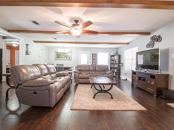 Lovely ranch style home nestled among large oak trees on over 3 acres! This newly renovated home features granite counter tops, laminate wood flooring, glass tile backsplash, all new appliances and much much more. There is a great workshop and even a storm shelter on the property. This home is a MUST see. Bring the family and come see this beauty before its gone!!!