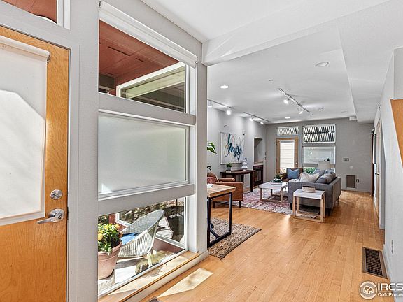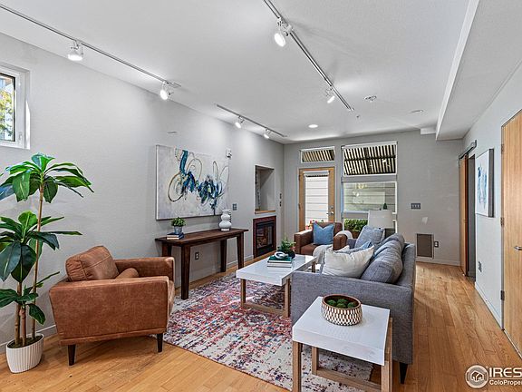 Light-filled two-level loft in Studio Mews, the creative heart of the Holiday neighborhood. Developed by Coburn, the customization of this one-of-a-kind space was artist-inspired and influenced by the owner. A thoughtful layout and intentional touches evoke New York City live-work design, with a spacious and flexible main floor and true open-concept living space upstairs. Situated in a mixed-use environment, this is a perfect configuration to spark creativity during the day, and retreat to your peaceful sanctuary in the evenings, with a large honed-granite black island for cooking and gathering, a second fireplace for cozying up and reading, and views out to the foothills. Enjoy modern accents like large front-facing windows, industrial light fixtures, sliding doors and cable railings. The private back patio is a lovely sanctuary, buffered with lush landscaping, and punctuated with custom planters and an outdoor dining nook. Detached garage is conveniently close to the back door, offering a coveted parking amenity in the community, and plentiful storage. Situated in the master-planned Holiday neighborhood, this gem is just down the path from the community's central park, and close to Proto's Pizza, Spruce Confections, and a variety of foothills trails. Come see why this special unit has been so well-loved by the owner and treasured by friends and neighbors. *Don't miss List of Improvements in the Attachments*