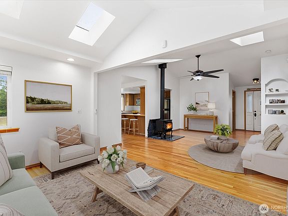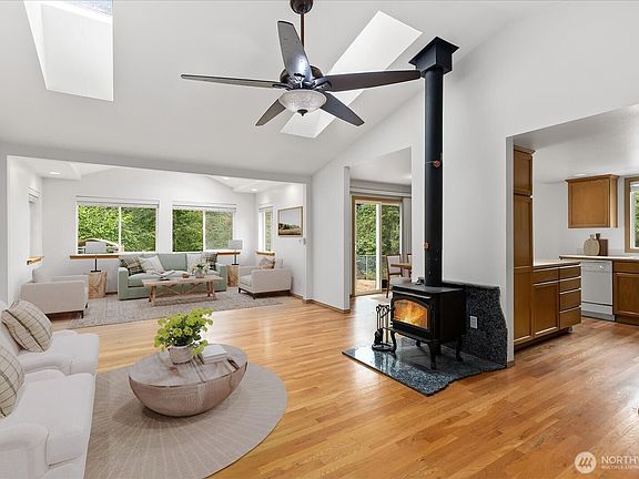 Peaceful setting with stunning mountain views from the front and a lush greenbelt bordering the backyard. This well-maintained 3-bedroom, 2-bath one-story home is move-in ready, featuring hardwood floors, vaulted ceilings with skylights, and thoughtful updates including a newer roof, water heater, A/C, and generator. Nestled on a quiet cul-de-sac in downtown Gold Bar, the flat yard offers plenty of space for gardens or outbuildings. Just minutes from the best Pacific Northwest hiking trails, skiing, and outdoor adventures.
