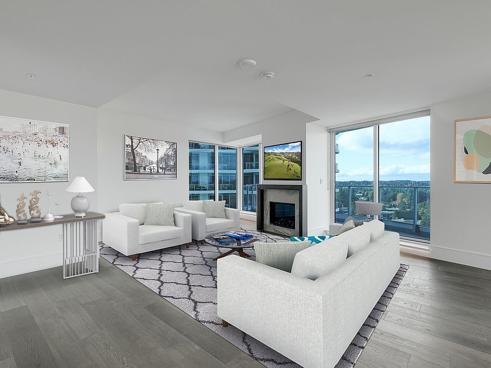 A rare offering at Foster & Martin – two premier units combined into one stunning 2,300 sq. ft. 3 bed, 3 bath + den residence. Enjoy panoramic 180° ocean, Mt. Baker & North Shore Mountain views from every room and a 419 sq. ft. wrap-around balcony. Features floor-to-ceiling windows, hardwood floors, A/C, gas fireplace, and a chef’s kitchen with Miele appliances and large island. Includes 4 parking spaces, 2 lockers, and access to a 10,000 sq. ft. Health & Wellness Centre with pools, gym & concierge. OPEN HOUSE SUN OCT 26 2-3PM