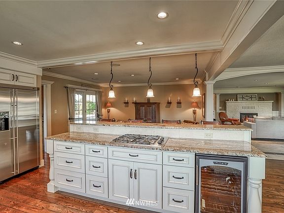 You will appreciate the beauty of this updated & spacious 3,852 SF home conveniently located on nostalgic Front St. within walking distance to all downtown Lynden has to offer. Features 4 bedrooms w/ master on the main floor & fully finished basement with w/ rec room, kitchenette & more! The huge open living room & kitchen are perfect for entertaining. Other features are hardwood floors, custom cabinets, granite counter tops, 3 fireplaces, sport court/outdoor living area and workshop!