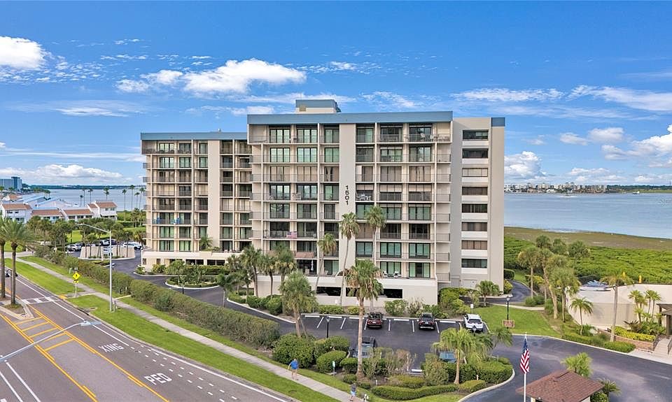 Your dream 3-bedroom beach retreat awaits! Experience breathtaking, unobstructed views of the Intracoastal Waterway from every room in this beautifully renovated 3-bedroom, 2½-bath residence. Perched on the 3rd floor, this rare corner unit offers unparalleled privacy and a sweeping panorama from its expansive 40-foot private balcony—perfect for enjoying sunrise coffee or evening sunsets. The open-concept design features a spacious kitchen with crisp white cabinetry and premium stainless steel appliances, seamlessly flowing into light-filled living spaces adorned with modern porcelain tile. The thoughtful split-bedroom floor plan ensures both comfort and privacy, all while maintaining continuous water views. Exclusive South Bay amenities elevate everyday living: a geo-thermal heated saline pool overlooking the water, a whole-building water softener, secure gated entry, and convenient kayak/paddleboard storage with private waterway access. Additional perks include bike storage, a fully equipped clubhouse with kitchen, grill, billiards, and fitness room, plus adjacent public tennis and pickleball courts. For beach lovers, easy access to the pristine sands of Sand Key Beach lies just across the street, while charming restaurants and boutique shops are only a short stroll away. This residence is more than a condo—it’s a carefree coastal lifestyle where every detail has been designed with quality and elegance in mind. Opportunities like this are rare in highly sought-after Sand Key. Don’t miss your chance to own a piece of paradise! If you snooze you will lose!