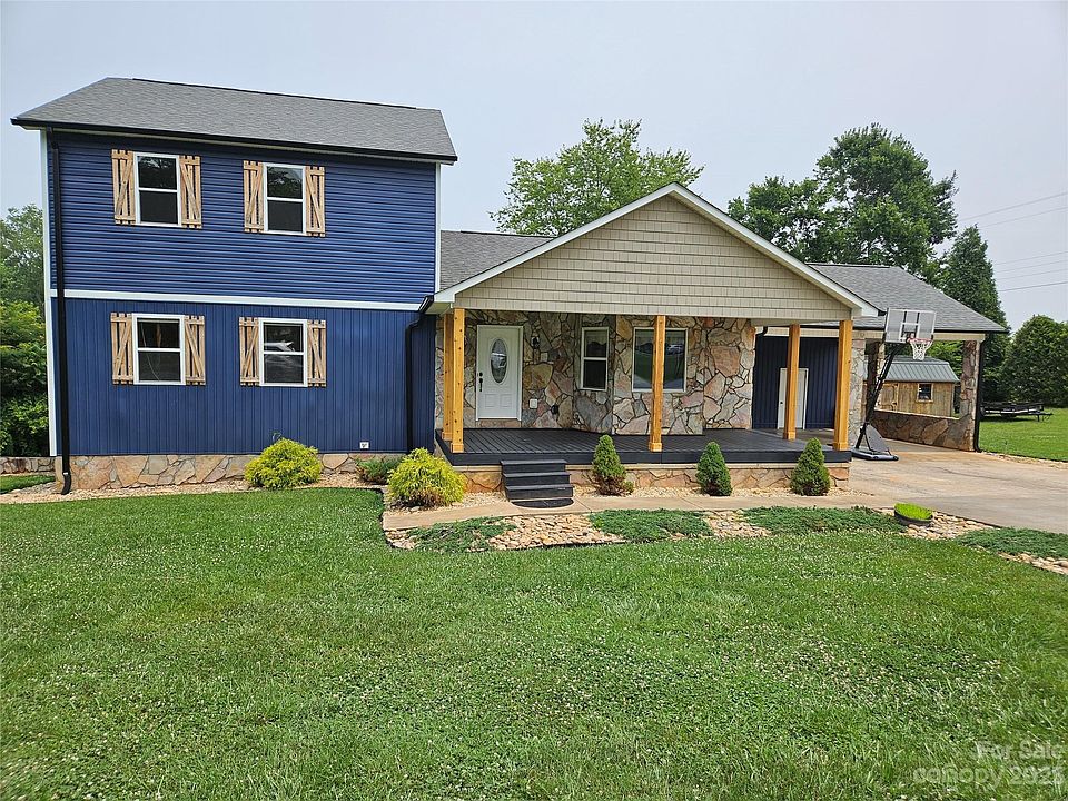 1501 Ivy Lane Valdese $425,000 3 - 5 room, 5 with closets & 4 with windows [septic tank is rated for 3 bedrooms] & 4 baths! Covered front porch, living room w/hardwood floors, vaulted ceiling, bay window & gas log fireplace. Vaulted dining & updated kitchen w/ island/bar, stainless appliances, backsplash & granite countertops. Year round sunroom plus an add'l covered rear deck. Separate laundry room off the kitchen. Primary bedroom w/ private bath, plus 2nd bedroom & full bath, complete the main level. Upstairs you will be greeted by a 3rd br & a 4th room with closet & windows as well as a full bath. Basement with 28 x 23 family room w/ recent vinyl plank flooring, mini-split heating & air, & an electric fireplace. There is a 23 x 9’9 flex space/hall, den/office/kitchenette, 4th full bath, & 5th bonus room w/ closet but no window & bsmt exit. 23’4 x 19’2 carport, 11’6 x 6’6 utility area & 24’2 x 11’2 outbuilding. Please continue to view, sale is contingent on the sale of another home.