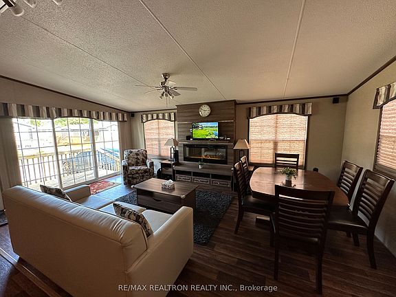 Largest Model3 bedroom, 2 full bathroom cottage at Vine Ridge Resort in Queenston open from May 1st to October 31st. Close to Niagara Falls, Niagara-On-The-Lake, hiking, cycling, the Niagara River Parkway, golfing, award winning wineries and outlet mall shopping. This unit comes fully furnished, has a beautiful deck, a metal gazebo with lighting and shed for storage. The main bedroom has a Queen size bed, the two additional bedrooms have bunk beds. The living room has a pullout couch so at full capacity can sleep 10 people! This is a great investment property or a place to enjoy through the summer months. A/C and heating for seasonal enjoyment this is move in ready! Resort Cottage owners pay for their own propane and insurance. The annual resort management fee includes unlimited use of all resort facilities for you, your family and guests, resort maintenance, water and sewage, hydro, grass cutting, WiFi in welcome centre, Kids Klub, 1 acre splash pad, inground pool, multi sport courts, playground and special events. The annual resort fees have been paid in full for 2021. This unit has hardly ever been used so it is in mint condition. storage shed, all china & cutleries, mattresses, 2025 Site Fees Paid ($9,288), Bbq, tv, gazebo, heaters and all patio furniture and much more are all included. One of the sellers is a Realtor.