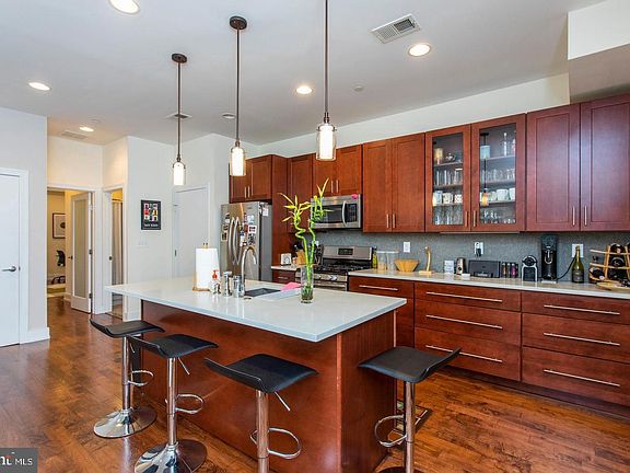 Beautiful Apartment w/ PARKING for Rent. Spectacular corner unit condo with open floor plan and tons of windows and natural light. Wide-plank hardwood throughout the entire place! Sliding glass doors off the master bedroom and living room to 2 separate decks with amazing city views. 3 bedrooms and 3 full bathrooms in an elevator building. The luxurious kitchen has quartz counters, a large quartz island with seating and pendant lights, stainless steel appliances, tiled back splash and an abundance of cabinets. The gorgeous bathrooms have floating vanities and designer fixtures. 1-CAR PARKING INCLUDED! Other amenities include full-size front load washer and dryer, access to amazing community outdoor space, solid doors and intercom system. Walk to Fishtown and Northern Liberties! 3 blocks to the Piazza, enjoy restaurants and coffee shops along Frankford Ave and walk to several green spaces and dog parks. Located in one of the Hottest zip codes in Philly!