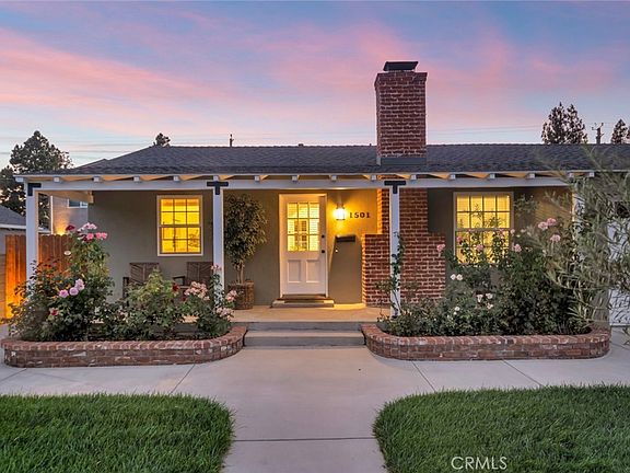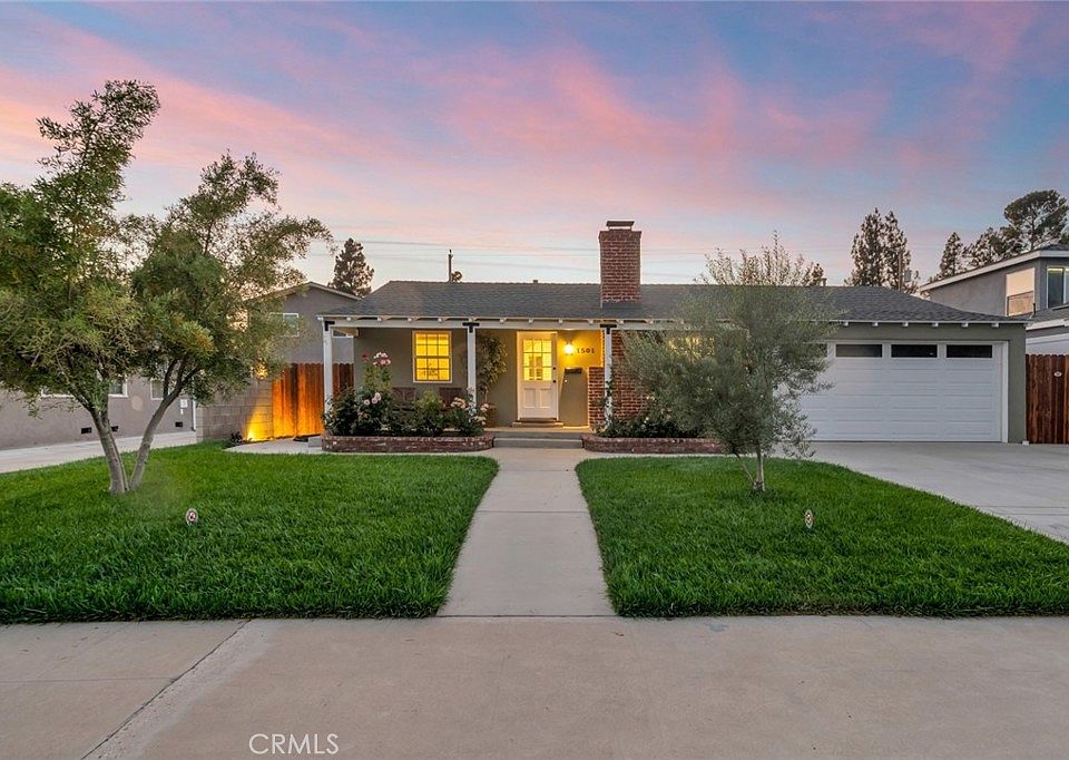 Step onto the wide front porch of this immaculate Burbank charmer and feel instantly at home. Every detail has been thoughtfully cared for in this 3 bedroom, 2 bath residence on a huge lot, featuring gleaming hardwood floors, dual-paned windows, with classic warmth and modern updates. The inviting living room with its fireplace flows to a dining area overlooking the covered patio and expansive, beautifully landscaped backyard—perfect for gatherings. The remodeled ¾ bath offers a large shower, while the full bath retains timeless appeal. A spacious kitchen boasts ample counter space and stainless steel appliances, complemented by a large utility room with extra cabinets for storage or pantry use. One of the bedrooms even features its own fireplace for added charm. Outdoors, enjoy a huge backyard with mature landscaping, two storage sheds, concrete walkways, with room for a pool and even an ADU! A two story 10 foot by 12 foot insulated Tuff Shed in the yard gives you additional storage. With an attached 2-car garage, tankless water heater, newer HVAC system as of August 2024, and upgraded 200 amp electrical panel, copper plumbing, this home is as functional as it is enchanting—a true Burbank gem where every detail shines.