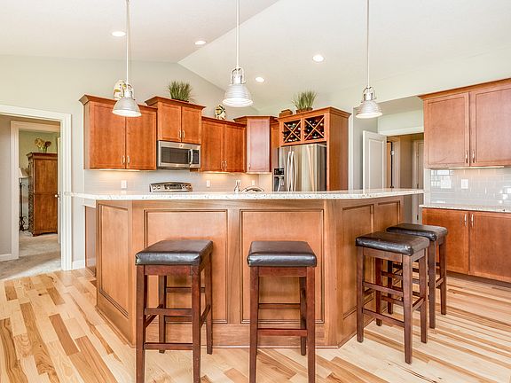 You cannot rebuild this beautiful ranch home for this price with these upgrades! A spacious open concept main level with high vaulted ceilings includes a family room with custom built-in window seats and entertainment center. Into the kitchen you will find hardwood floors, soft-close cabinetry, granite countertops, pantry and stainless steel appliances. The Master retreat features a tray ceiling, walk-in closet and stunning en-suite with dual vanities, quartz counters, and large tiled shower with dual heads. Continuing, there are two additional bedrooms, with a Jack and Jill bathroom, and an added half bath for guests. Completing this main level is a large laundry room with sink, a mud room with built-in lockers and a walk-in closet. The lower level is finished with 9' ceilings, a huge family room, including a large wet bar with abundant cabinetry. Completing the lower level are two more bedrooms, another stunning bathroom with a large bamboo vanity, and large walk-in storage closet.