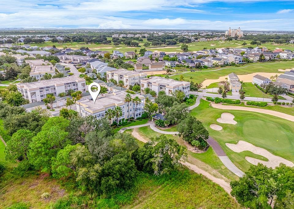 Ask about a lender provided RATE BUY-DOWN CREDIT on this home** Seller may consider buyer concessions if made in an offer** Welcome to your personal retreat in the heart of Reunion’s premier golf community - The Terraces! This gorgeous second floor condo captures the best of RESORT STYLE LIVING and effortless elegance, just MINUTES FROM DISNEY PARKS and Central Florida’s world-class attractions. Inside you will be greeted by a light, bright OPEN CONCEPT layout with TILE & LUXURY VINYL PLANK FLOORS throughout - no carpet here! Natural light pours in through four sets of French doors, leading to an expansive WRAP AROUND BALCONY with breathtaking GOLF COURSE VIEWS. Whether you are enjoying a morning cup of coffee or unwinding after a day at the parks, this balcony offers the perfect setting. The kitchen blends style and comfort with UPDATED STAINLESS STEEL APPLIANCES, newer fixtures, pantry storage, a BUILT-IN BREAKFAST NOOK surrounded by windows, and a breakfast bar that is ideal for casual dining or entertaining. Your PRIMARY SUITE is a true escape – complete with a decorative tray ceiling, crown molding (also in the main living!), a private en-suite bath, and an EXTENDED WALK-IN CLOSET. Pride of ownership shines throughout with thoughtful upgrades: Luxury vinyl plank flooring (2021), upgraded porch fans (2021), A/C compressor replaced (2022), and annual air duct and A/C maintenance, plus a dryer vent cleaning in (2024). The home also includes a 1-CAR GARAGE for dedicated parking with storage space, and GATED ACCESS for added peace of mind. Meticulously constructed to withstand Florida’s elements, this condo is ideal as a LOW MAINTENANCE primary residence or home away from home! The Terraces at Reunion offers residents a clubhouse, resort pools, fitness center, tennis courts, playground, dog park, on-site restaurants and so much more! The quarterly fee also covers an array of amenities so you can focus on living, not upkeep. With stunning views, an unbeatable location, and a MOVE IN READY condition, this is your chance to live the Reunion Resort lifestyle – luxurious, convenient, and absolutely unforgettable. There is so much to love – schedule your showing today and see why this one stands out!
