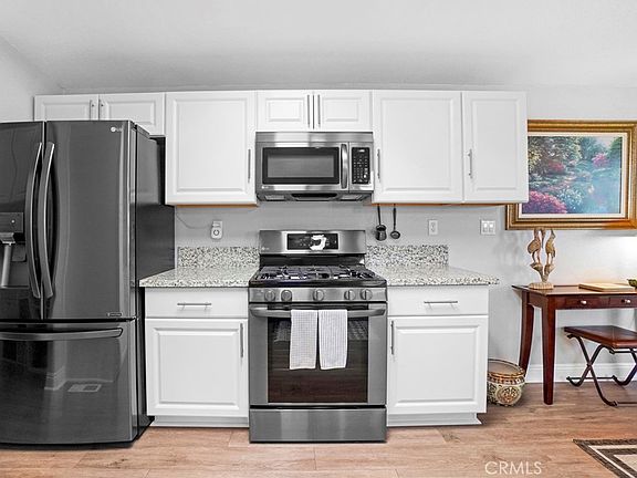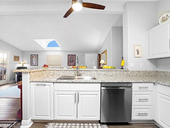 Pride of ownership abounds in this immaculate 3 bedrooms, 2 bathrooms turn key home with 3 car parking covered carport, deck with under deck workspace/storage, plus 2 sheds. Entire home was completely remodeled 5 years ago to include the kitchen, bathrooms, laminate flooring, paint, fixtures, windows and more. Recent upgrades include a tankless water heater, new furnace, central air conditioning, 2 stage water filtration system, ceiling fans with remote controls in all bedrooms and kitchen, dishwasher, refrigerator, kitchen sink and faucet, security screen on front door, pergola and retractable awning on deck. New steps were added to access under deck storage and workspace area which includes an additional shed! New roof and 2 new skylights installed within the past year. The Master bedroom has an ensuite bathroom with a modern soaking tub, double sink vanity with marble counter top, and a separate walk-in shower. The Living room, Dining room and Kitchen area are open plan with both French doors and sliding glass doors opening onto a gorgeous completely private 27'x14' deck. Relax and enjoy the views across the valley to Mount Baldy and the San Gabriel Mountains. Amenities at the Clubhouse include outdoor swimming pool, BBQ area, Billiards room, full kitchen and on-site laundry, all with views across the valley. There is an overnight security guard, on-site manager and maintenance crew, pet bag stations and self car wash facilities.