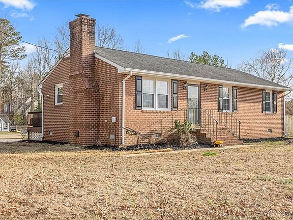 Storybook ALL BRICK Ranch Home that quietly rests on 2 Level Acres in New Kent County! This Well-Loved 3-Bedroom, 2-Bath home has been wonderfully cared for and ready for you. From the moment you step inside you will feel right at home. Family Room with lots of natural light, Gorgeous brick wood burning fireplace with stove, Cozy Kitchen with white cabinetry, tile backsplash, and newer stainless appliances. Utility area with pantry organizers. Primary Bedroom is generous and has a Full bath with a shower. 2 Secondary Bedrooms with ceiling fans and Full Bath with Tub/Shower. New LVP throughout all living areas and new paint. Outside is where all the activities can be with tons of usable space. 31x24' Detached Garage with a 7000LB car lift and wood stove that conveys, 30x25' Lean To with lighting and fan. Additional 20x18 detached shed. Cute Chicken Coop with new auto door opener. What is not to love. Peace & Tranquility abounds. You will not want to miss this GEM!
