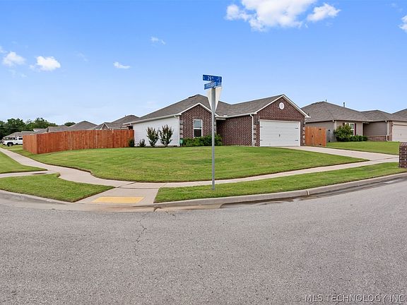 Large Corner Lot!! This charming residence features a spacious floor plan with kitchen open to the living area, stainless steel appliances, and luxury vinyl plank in main and wet areas, while the large primary bedroom features an ensuite bath with a walk new shower and walk-in closet. The backyard offers an extended concrete patio, covered patio, pergola, and a privacy fence with extra-wide double gated access. Conveniently located near HWY 51 and the Creek Turnpike, this home provides easy access to shopping, dining, and recreation. Don't miss out on the opportunity to make this your own serene retreat!