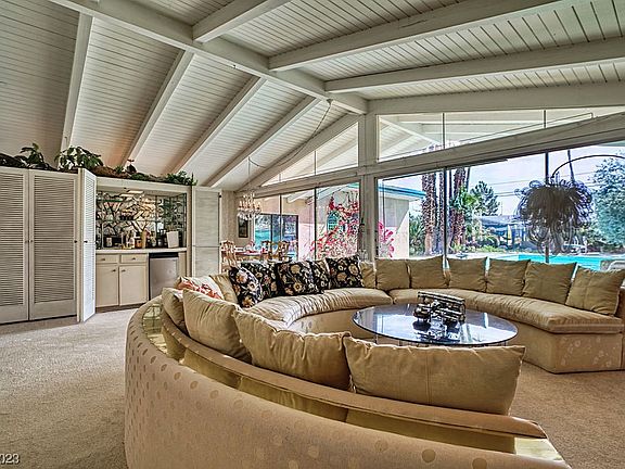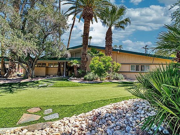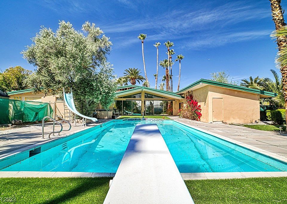 MESMERIZING VIBES FROM THE GET GO *CASINO BOSS'S AMAZING*SPECTACULAR RETRO*VINTAGE*GRAND 50'S VEGAS CLASSIC* PHENOMENL ARCHITECTURE*OOZES CHARM*30' HI VAULTED BEAM CEILNGS*STUNNING SKYLITES*ALL VAST ENTERTAINING ROOMS W FULL GLASS WALLS OPEN TO*DRAW-DROPPING *SUN-DRENCHED *KILLER*55 X25" SWIMMING POOL*WITH DIVING BOARD & SLIDE* UTTERLY PRIVATE *HUGE LUSH 1/2 ACRE BACKYRD SURROUNDED BY 100' HIGH*BEVERLY HILLS PALM TREES*5 BEDRMS*6 FULL BTHRM S* GUEST CASITA* DANCE-BAR & MIRRIRED WORK-OUT GYM *HGE PRINCPLE BDRM SUITE W GIANT BTHRM ALS OPENS POOLSIDE* 40X28 GREAT RM (INCEDIBLE CIRCULR SOFA SEATS 16*LAVISH FLR TO CLNG FIREPLCE*SPE GRAND-PIANO ROOM OPENS POOL- SIDE *SEP CASITA (W KIT & BTHRM)*SWEEPING 12+ CAR CIRCULAR DRIVEWAY*FOR HUGE RV/BIG BOAT *LRGE PORT-COCHERE *PUTTING GREEN* NO HOA*TAXES ONLY $2200 A YEAR*OWC WITH $300K DOWN OWC 1ST MTGE LOW INTEREST.*BONUS***-APPROVED FOR ASSISTED LIVING STATUS*( POSS NET INCOME $250K ANNUALLY SHOWS INCREDIBLE CASH ON CASH FOR SAVVY BUYER