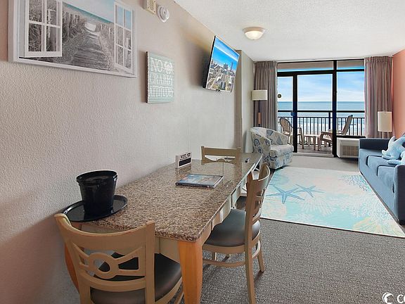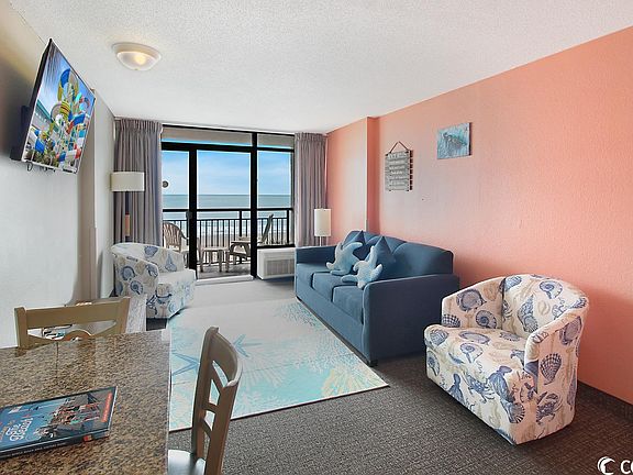 Indulge yourself in your personal oasis by the ocean with this direct oceanfront one-bedroom, one-and-a-half-bath retreat. This cozy unit boasts a comfortable king-sized bed, a versatile queen Murphy bed, and a convenient queen sleeper sofa, ensuring ample sleeping space for up to six guests. Unit is equipped with a full kitchen for ease and convenience. Whether you're seeking a home away from home or a savvy investment opportunity, this unit checks all the boxes. Located conveniently on the 4th floor, you'll appreciate the easy access to the parking deck via a convenient crosswalk. The Landmark Resort offers a plethora of amenities, including both indoor and outdoor pools, lazy rivers, a kiddie pool, waterpark and a Starbucks for your caffeine fix. There's also a game room, a fitness center, a restaurant, a lounge, and a snack bar to keep you entertained and well-fed. Don't miss the chance to experience this remarkable coastal haven. Schedule a showing today and embark on a journey to seaside serenity.