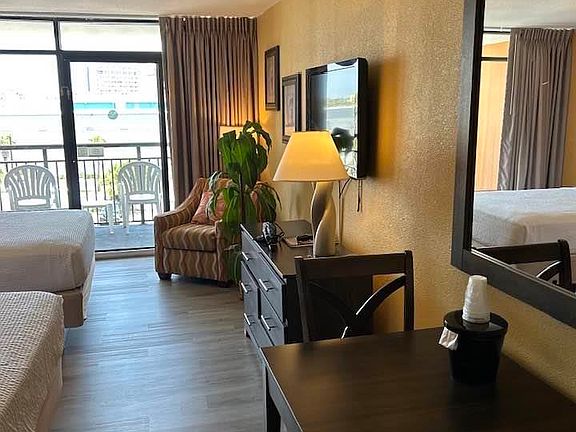 Back on the market through no fault of the owners. Welcome to the epitome of coastal living at the Landmark Resort in the heart of Myrtle Beach, South Carolina. Nestled within this renowned oceanfront paradise, we proudly present a charming and efficient condo that redefines the essence of comfort and convenience. This thoughtfully designed efficiency condo offers a seamless blend of space optimization and modern aesthetics, making it an ideal retreat for those seeking a tranquil beachside getaway. The open-concept layout creates an inviting ambiance, where the living and sleeping areas seamlessly flow into each other. Natural light cascades through large windows, painting the interior with a warm and welcoming glow. Step onto your private balcony and be swept away by panoramic vistas of the Atlantic Ocean and the pristine sandy shores that define the allure of Myrtle Beach. Savor your morning coffee as the waves serenade you or unwind with a glass of wine as the sun dips below the horizon in a dazzling display of colors. The condo's functional kitchenette is tastefully appointed with modern appliances, sleek cabinetry, and ample countertop space, offering the perfect canvas for casual meals. When it's time to rest, the sleeping area promises utmost comfort and tranquility. Drift off to the soothing sound of waves and wake up rejuvenated, ready to embrace another day in paradise. As a resident of Landmark Resort, you gain access to an array of world-class amenities that define the art of coastal living. Dive into the refreshing outdoor pool, lounge in the lazy river, or bask in the sun on the sundeck, Additional conveniences include on-site dining options, a fitness center, and a vibrant social scene. Beyond your doorstep, the attractions of Myrtle Beach beckon. From championship golf courses and boutique shopping to renowned dining establishments and lively entertainment venues, the possibilities are endless. Don't miss the chance to own this efficiency condo at the Landmark Resort, where every day brings a renewed appreciation for the beauty of the coast and the joy of effortless living. Whether you're seeking a serene vacation home or an investment opportunity, this condo embodies the spirit of Myrtle Beach living at its finest. Contact us today to schedule a private tour and embark on a journey to call this exceptional property your own.