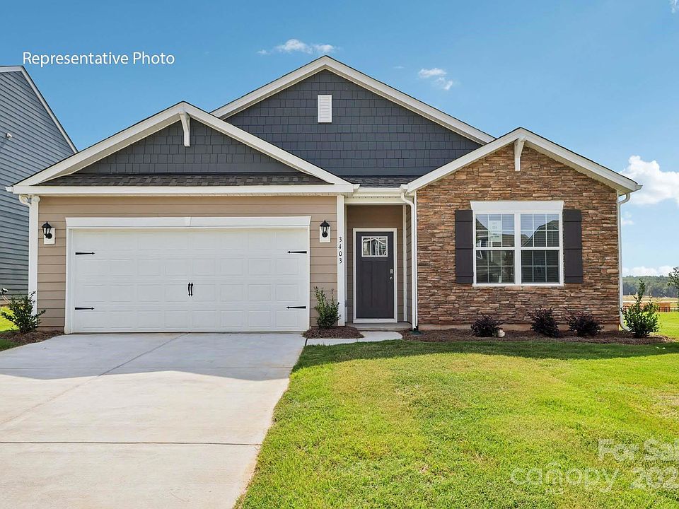 Secrest Commons is conveniently located minutes from historic downtown Monroe with shops and restaurants. The Cali is a spacious and modern single-story home designed with open-concept living in mind. Upon entering the home, you'll be greeted by an inviting foyer that leads directly into the heart of the home. This open plan features living room, dining room, and well-appointed kitchen. The kitchen is equipped with a corner walk-in pantry, stainless steel appliances, and a large island with a breakfast bar, making it perfect for both cooking and casual dining. The Cali also features a primary suite, complete with a large walk-in closet and a primary bathroom with dual vanities, Garden tub and separate shower. The additional three bedrooms and secondary bathroom are located at the opposite end of the home, providing optimal privacy for both you and your guests. In the rear of the home is a covered porch that is ideal for outdoor entertaining, backing to common area.