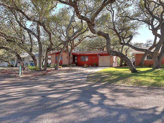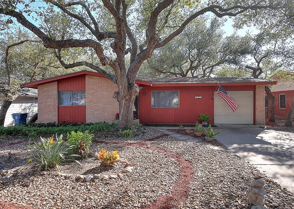 Welcome to Shadyside, a quiet tree covered cul de sac located in the heart of Rockport. This 1950s home is loaded with charm and unique characteristics that will transport you back to a simpler time. Open living with beautiful beams and a cozy interior brick wall. Rich wood paneling lines the dining room with built in eating bar and French doors out to the back patio. The retro kitchen leads to an attached one car garage with washer and dryer connections. You will love the fresh carpet in the 3 bedrooms and hallway. Full bath with classic powder blue tiles in the tub/shower combo and ample linen storage. Mature Live Oaks shade the front and back yard allowing just enough light for the native foliage to thrive. Ideal location near schools and shopping, 1 mile to Memorial Park or the Rockport Beach.