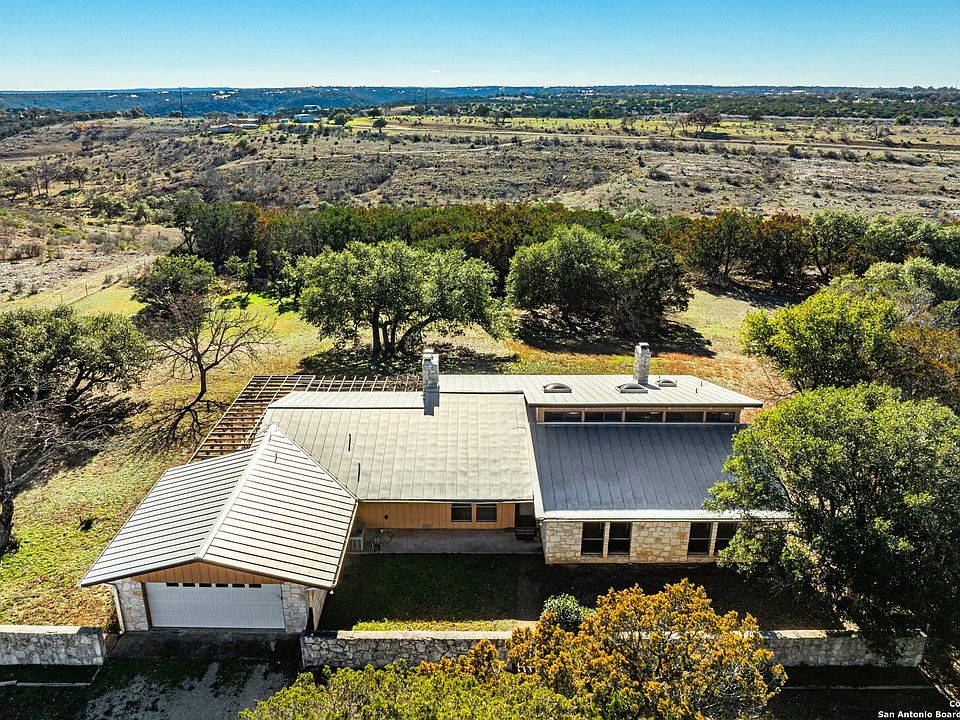Welcome to your dream retreat in the heart of the Texas Hill Country just minutes from downtown! This exquisite 13-acre property exudes the timeless charm of mid-century modern style and offers an unparalleled living experience. Boasting 3 bedrooms and 2.5 bathrooms, this home is a perfect blend of style, comfort, and natural beauty. As you approach the property, a sense of tranquility washes over you, embraced by the lush landscape and majestic oak trees that dot the grounds. The mid-century modern design sets the tone for what lies ahead. With clean lines, large windows and open spaces that seamlessly blend indoor and outdoor living. The living area features soaring ceilings and expansive windows, allowing natural light to flood the space and offering unobstructed views of the picturesque landscape. Enjoy cozy evenings by one of the three fireplaces, relishing the peace and serenity that only nature can provide. Located in a secluded yet accessible area, this property offers the best of both worlds.