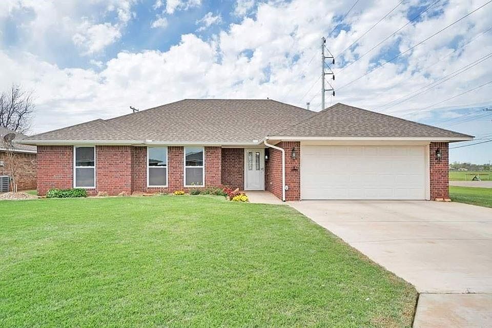 2018 build/1665 square feet of living space/4 bedroom/split plan-all with ceiling fans/2 full baths/1 dining area/2 car garage/laundry room/soft close cabinets & drawers/tilt in windows/electric oven, microwave, disposal & breakfast bar dishwasher/sprinkler system/oversize back patio/wood privacy fence/small storage shed stays