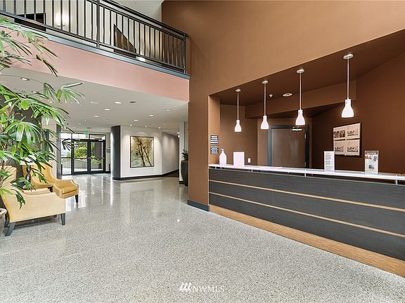 In the heart of downtown revival area! Stylish ground floor end unit overlooks inner courtyard patio with Mt Rainier views. Well-designed space, big windows, granite finishes, radiant heat floors, fashionable lighting, central AC and two prkg spots are some of the features you'll find. Fresh kitchen offers SS applcs, opens to living area; sizable bdrm and bath with double sinks; in-unit laundry accommodates stackable W&D. Located in New Tacoma, this upscale secure gated bldg offers fitness center, theater room, lounge area, BBQs, courtyard, and is pet-friendly. Walk ability factor is high with UW-Tacoma, convention center, theater, hot spots, light rail right outside your door. Convenient to main commutes, major amenities, JBLM.