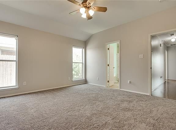 Beautiful, bright 3 bedroom, 2 bath home with open concept and lots of natural light. Vaulted ceilings throughout large living area with wood burning fireplace. New carpet installed in all bedrooms. Master bedroom features a large walk in closet and private bath. Completely renovated secondary bath including, new tile, bathtub, toilet and vanity. Large separate utility room with full size hookups. Rear entry garage with fenced back yard.
