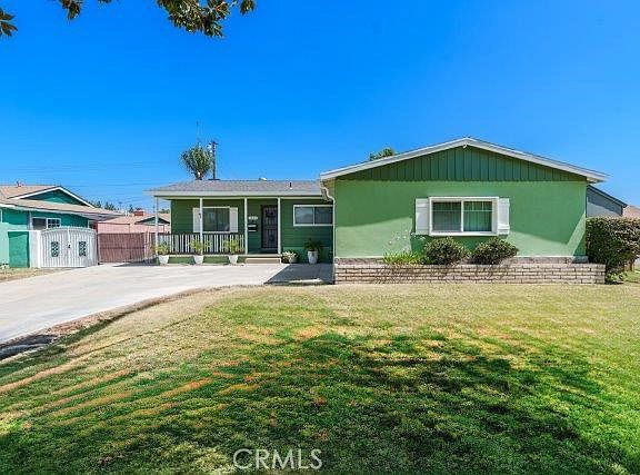 Welcome to this beautifully maintained 4-bedroom, 2.25-bathroom home offering 1,416 sq ft of comfortable living space on a generous 7,455 sq ft corner lot. Located in a desirable neighborhood close to parks, schools, shopping, and dining, this single-story gem has it all! At the heart of the home, the upgraded kitchen is a true standout—featuring an island with bar-top seating, recessed lighting, and abundant cabinetry for all your storage needs. The open layout flows seamlessly into the inviting living room, where a cozy fireplace creates the perfect gathering space for family and friends. All bedrooms are generously sized to accommodate any lifestyle. An enclosed patio adds versatile bonus space—ideal for a home office, second living area, or workout room. Step outside and enjoy the expansive backyard with a covered patio, mature landscaping including palms and vibrant birds of paradise, and a large front yard that enhances curb appeal. The long driveway offers ample parking along with RV parking.