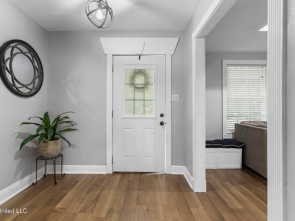 This distinctive home offers a warm and inviting main level featuring a stylish wood-paneled accent wall in the living room. The remodeled kitchen is a standout with granite countertops, modern finishes, and a cozy eat-in dining space.