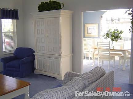 Look out Master bedroom and patio for beautiful sunrise over Glenview C.C. Walk to Glenview C.C. tennis facility with har-tru tennis surface. Rare corner lot 2 bedroom Carriage House townhome in one of a kind neighborhood in The Villages. Complete turnkey unit with kingsize beds in both large bedrooms. Completely furnished. Eat in kitchen, dining room and living room with intercom system throughout unit.