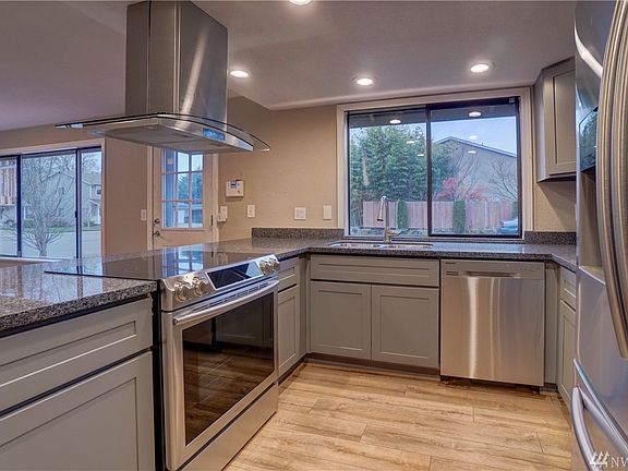 Beautifully updated tri-level floor plan is filled with natural light. Extensively upgraded throughout. Stylish, urban-style kitchen features custom color cabinets and granite, SS applcs, fixture and hardware; new flooring, new carpet, new paint, new deck off master, new gutters, new garage doors -- the list goes on! Ideal home for entertaining; 2 woodstoves, 2 decks, AC/heat pump. Attractive corner lot with plenty of prkg. Easy access to commutes, amenities.