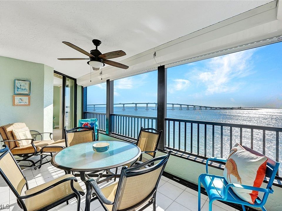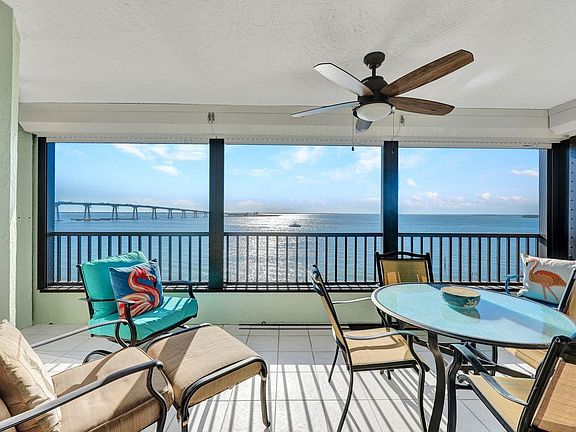 Enjoy the opportunity to move into your Bayfront condo this season! This furnished condo is ready for occupancy and offers stunning views of the Bay and the Causeway Islands. Featuring a completely updated primary bathroom and nicely appointed kitchen with new appliances this must-see unit is welcoming and inviting. The guest suite enjoys a great workspace and murphy bed and is a versatile space. Tile flooring, plush carpeting, custom mirrors and storm shutters complete this unit. Being sold turnkey furnished. Pool, spa and grills are open and ready for use. The grounds continue to be improved to include bayside walkways and landscaping. Enjoy all Punta Rassa has to offer. Buyer will assume the $70,000 upcoming special assessment which will have the option to be paid in quarterly installments. Located Direct Bayfront just before Sanibel Island adjacent to the Sanibel Harbour Yacht Club and Sanibel Harbour Resort and Spa.