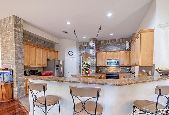 **Private Greenbelt**Custom One-Story within walking distance of top-rated NISD schools**walk to Sonoma Ranch swimming pool, sports courts, clubhouse**4 Bed 4 Bath PLUS Study/Office PLUS large Game Room upstairs which can be teenager or Guest Suite**full bath upstairs too**High Ceilings, Arches, Crown**Many windows**Custom KITCHEN features BRICK accents, Granite, Island, Desk, Breakfast Bar**OPENS to sunny Family Room w/Views of Trees/nature**Corner Gas/Brick Fireplace**private Master Suite downstairs**Sep. vanities, Jetted Tub, TWO closets!**Study/Office has glass french doors**Enjoy cookouts on your Backyard Deck w/ Pergola**Wired for HOT TUB**New Roof**1-New AC**$5k Flooring allowance**Prime Sonoma Ranch Location with EZ access to Loop 1604, La Cantera & UTSA**