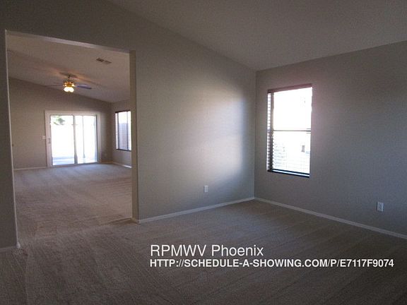 SCHEDULE A SHOWING ONLINE AT: showmojo.com/lh/e7117f9074 Grand entryway with vaulted ceilings in formal living, dining and den. Decorative cut outs in den and living are perfect for all knick-knacks. Open concept kitchen which features cream dishwasher, flat top stove & microwave. Washer & dryer hook ups in garage. All of home features *NEW* custom grey paint and *NEW* carpet! Two nice sized guest bedrooms share a guest bath. Enormous master bedroom with sitting area, en suite bath and generous sized closet. Ceiling fans & *NEW* faux wood blinds through out. Easy to maintain landscaping with *NEW* rock in the backyard and desert landscaping in the front. Both Bashas' & Fry's near by as well as Surprise Stadium. Home is friendly to two neutered/spayed pets max with additional deposit. No Section 8 $50 non-refundable application fee for up to 2 adults 18+. Base rent doesn't include monthly administrative fee which includes taxes Disposal Pets Allowed Range/Stove