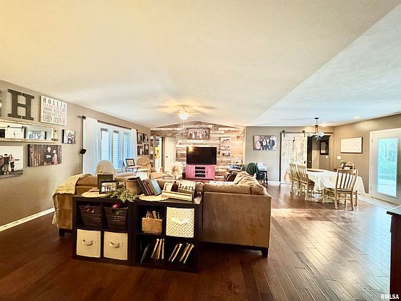 Welcome to your own private retreat! Nestled on 2 beautifully secluded acres with mature trees and thoughtful landscaping, this 4-bedroom, 3-full bath home offers both comfort and functionality. The spacious open floor plan features a welcoming great room that flows easily into the kitchen and dining area, perfect for gathering with family and friends. Upstairs, you'll find a versatile bonus room or second family room complete with a full bath, ideal for guests, a game room, or a cozy movie night space. Step outside to enjoy the peaceful setting from the covered front porch or relax on the back deck overlooking the above-ground pool. The property includes a 36x50 pole barn, a 2-car attached garage and an additional single-car attached garage. A shed sits near a large open area that would make an excellent garden spot or hobby farm, with water access already in place. Located just minutes from Rend Lake, you'll have easy access to a wealth of recreational activities including boating, fishing, hiking, biking, golfing, hunting, camping and scenic trails. If your looking for space, privacy, and a place to make lasting memories, this home checks all the boxes. Schedule your private showing today!