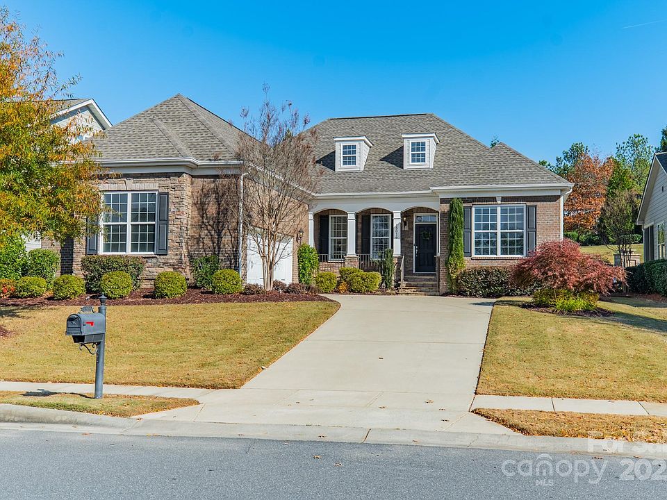Beautiful Waverly-model ranch in the highly desirable Regency at Palisades. This 3-bed, 2.5-bath home features an open, light-filled layout designed for effortless living and entertaining. A welcoming foyer leads to a formal dining room with crown molding and wainscoting, along with a private study that can serve as an office or sitting room. The spacious kitchen includes a large island, stainless steel appliances, 5-burner gas cooktop with venting, quartz countertops, subway tile backsplash, and soft-close cabinetry. The great room flows seamlessly to the dining and breakfast areas, offering comfortable everyday living. The primary suite features a tray ceiling, generous natural light, and a spa-inspired bath with dual vanities, frameless shower, soaking tub, and a well-appointed walk-in closet. Enjoy outdoor living on the front covered porch or partially covered deck overlooking a private backyard. HOA includes full lawn maintenance and irrigation. Resort-style amenities include indoor/outdoor pools, fitness center, tennis, pickleball, bocce, walking trails, social activities, and Lake Wylie access. This home offers comfort, quality, and a low-maintenance lifestyle in one of Charlotte’s premier communities.